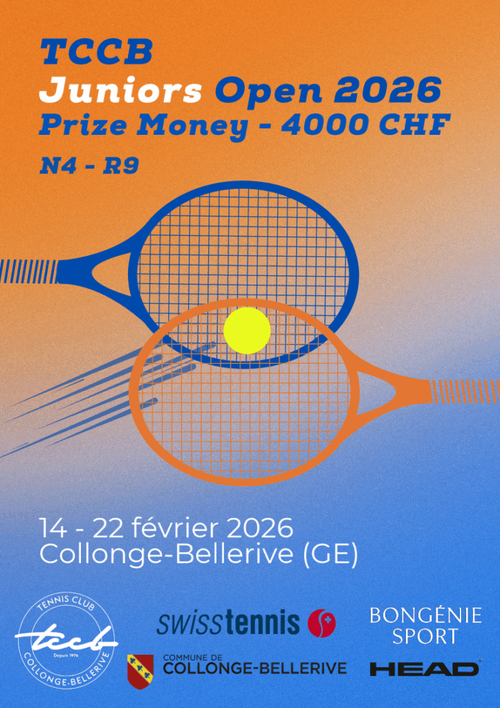 Le Tennis Club de Collonge-Bellerive a le plaisir de lancer la première édition du TCCB Juniors Open, un tournoi juniors officiel doté d’un Prize-Money de 4’000 CHF, ouvert aux joueurs classés R9 à N2.